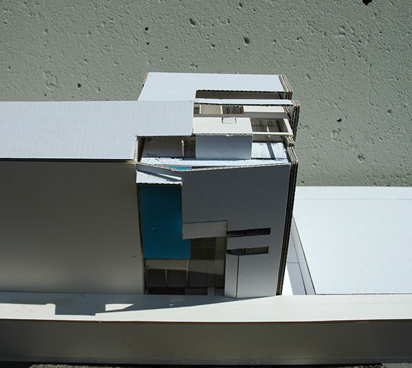 Der kubische Baukörper bildet den Abschluß einer bestehenden siebengeschoßigen Wohnbebauung (Abbruch Bestandsobjekt) und geht mit dem AK.- Hauptgebäude über den dazwischenliegenden parkähnlichen Garten eine geometrische Beziehung ein – Verschneidung und Aufnahme Baumassen Pösslgasse = Klammer.