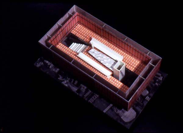 >> Die Elemente bilden ein zentrales räumliches Ganzes, bei größtmöglicher gewünschter Offenheit des Systems und der Bespielmoglichkeiten << - selbsttragende Konstruktion