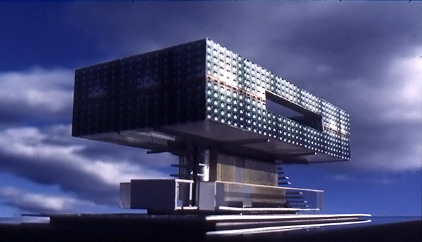 >> Die GroBform kann in Elemente zerlegt -Raster von 1.5 Metern - werden und bei Wahrung der Identitätselemente bis zur Kleinform von 30 m2 reduziert werden. Unterschiedliche Aufstellungsorte, Einsatzformen.