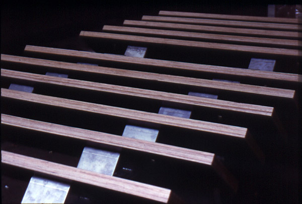 >> Wesentlicher Bestandteil des offenen Würfels sind die beiden horizontalen Elemente, der Boden und die Decke. Sie bilden konstruktiv eine Einheit und die Basis der unterschiedlichen, freien Präsentationsmöglichkeiten.