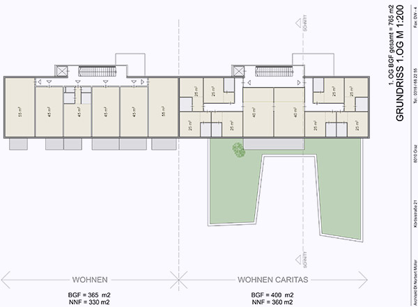 Intensiv Betreutes Wohnen als Pflegeeinrichtung der Caritas Steiermark, und als reines Wohnprojekt eine Anlage mit rund 22 Einheiten.