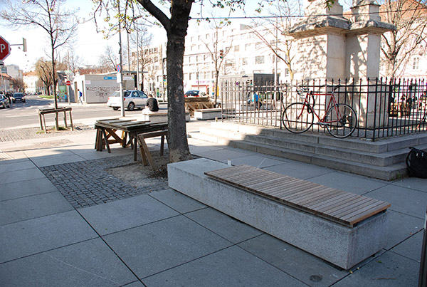 Das Konzept versucht die nur mehr rudimentäre Einheit mit 2 Kriterien neu zu formulieren. Erstens durch das Überlagern der gesamten Platzausdehnung mit einem einheitlichen Bepflanzungssystem und weiters mit der dadurch zwangsläufig notwendigen Veränderung der Strassenführung.