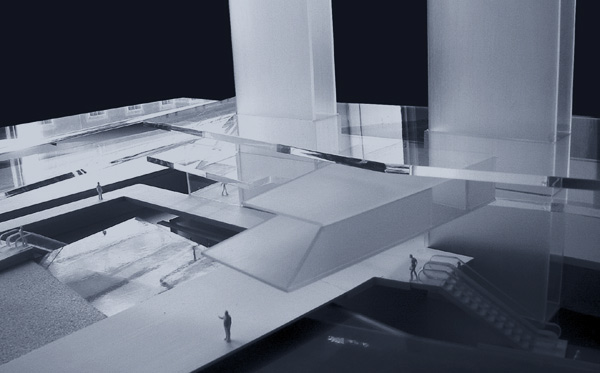 Darüber hinaus werden über ein Volumen auf zwei Ebenen die beiden Baukörper verbunden, Erschließung, Info-/Ladenzone, Ausstellungsflächen, Cafés und andere Infrastrukturen sind ergänzende Inhalte.