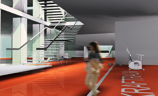 Komplettiert wird das Konzept der Sofortmassnahmen durch bauliche Anbauten, die in der Baustufe der "Zukunftsperspektiven" neue grosszügige Bereiche für die Erweiterungen Wellnes + Regeneration schaffen. Das Hallenbad sowie der bestehende Saunabereich werden in dieses Konzept integriert. Kleinere Umbauten vergrössern und adaptieren diese Bereiche zu einem zusammenhängenden Areal, das zentral an die Aussenanlagen und den Bestand angebunden ist. Das Erdgeschoss wird um die Zonen Videoanalyse-Seminar sowie Trainerzimmer, Bibliothek und Mediathek erweitert.