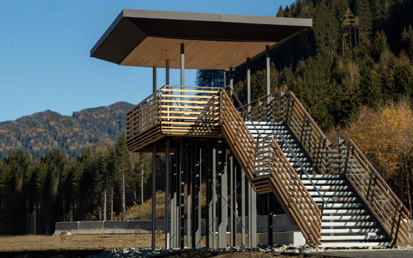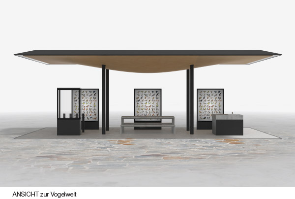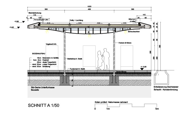 Als baulicher Schwerpunkt wird weiters ein Pavillion plaziert, der in seiner Form und inhaltlich Ausstellungsgegenstände zur ehe-maligen Dorfmühle, aber auch ein Cafe beinhaltet.